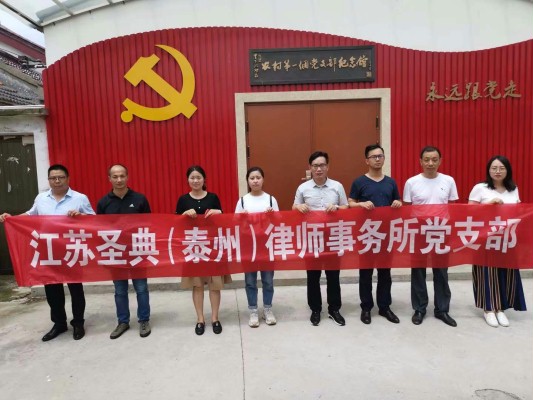 江苏圣典(泰州)律师事务所的全体党员律师,在党支部书记的带领下,站在东浒的红色热土上,面对党旗,再次举起右手进行庄严地宣誓,不忘初心,牢记使命,为共产主义事业奋斗终生。