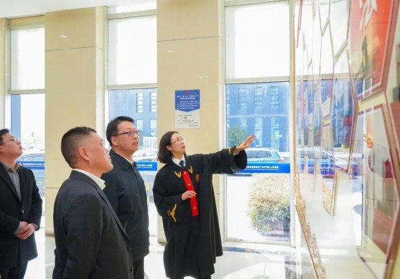 2023 年 3 月 29 日下午,医药高新区法院举行“法官尊荣墙”启用仪式。医药高新区党工委委员、高港区委常委、政法委陈磊书记出席并讲话,我所主任吴银书律师作为市协政协委员受邀现场见证。