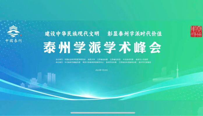 今年是泰州学派创始人王艮先生诞辰540周年。7月20日,以“建设中华民族现代文明,彰显泰州学派时代价值”为主题的2023泰州学派学术峰会在泰州隆重举行。